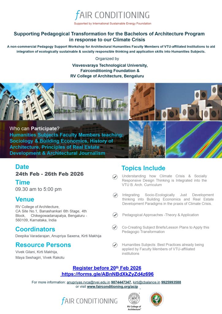 For more than three decades, RV College of Architecture (RVCA) has remained a pioneer in shaping the future of architectural education and research in India. Anchored in a philosophy that blends academic excellence with a deep-rooted commitment to sustainability and professional ethics, the college offers a dynamic learning ecosystem that nurtures intellectual curiosity and design thinking.